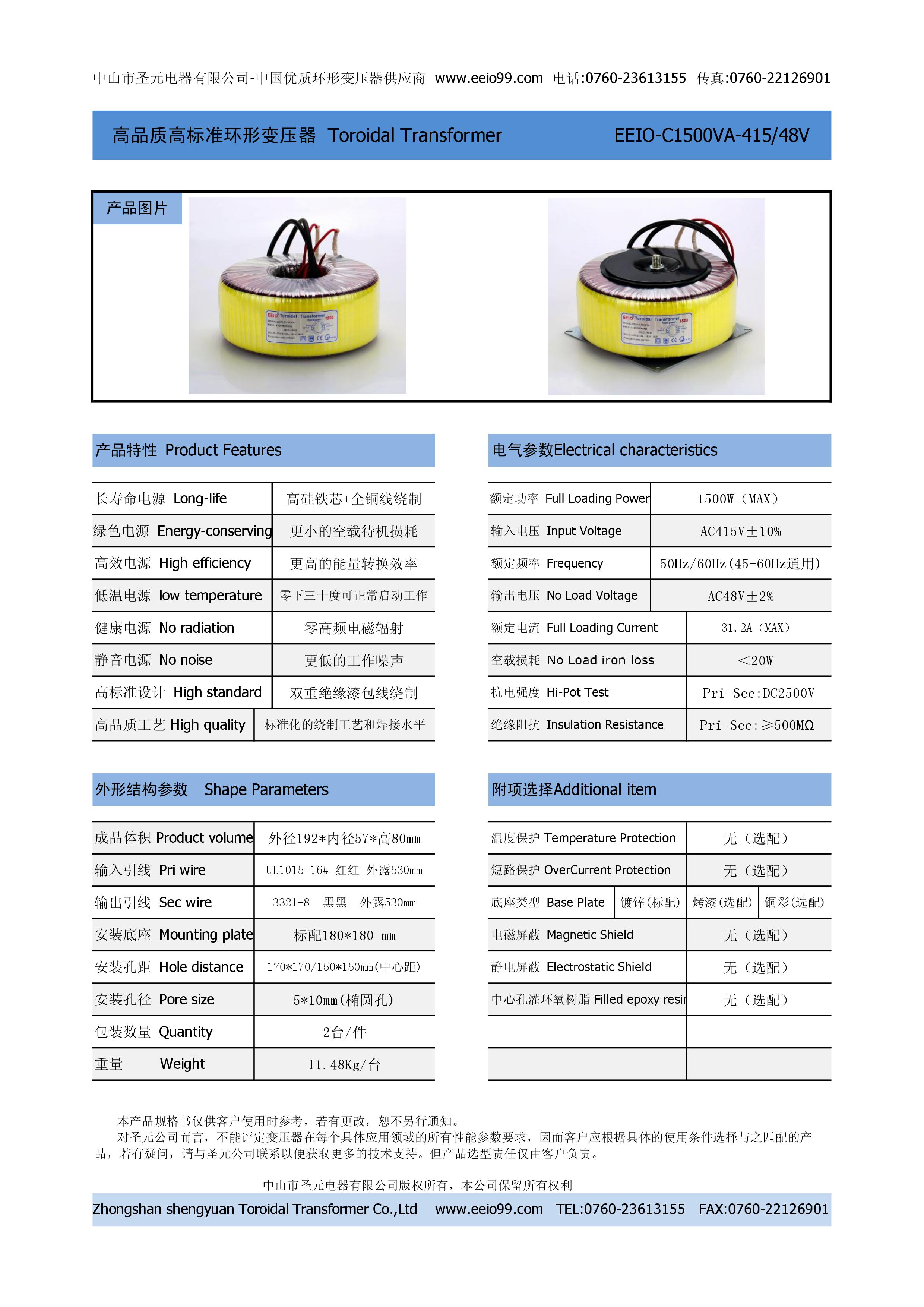 1500W单相变压器 415V转48V(效率高体积小变压器)1500W单相变压器 415V转48V(效率高体积小变压器)1500W单相变压器 415V转48V(效率高体积小变压器)